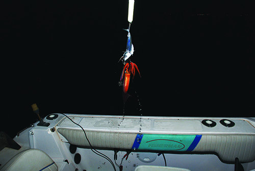 Μια υποβρύχια λάμπα (LED ή άλλου τύπου) είναι σχεδόν απαραίτητη — τα μαλάκια έλκονται από έντονο φως που «μαζεύει» πλαγκτόν και μικρά ψαράκια γύρω από την αρματωσιά.