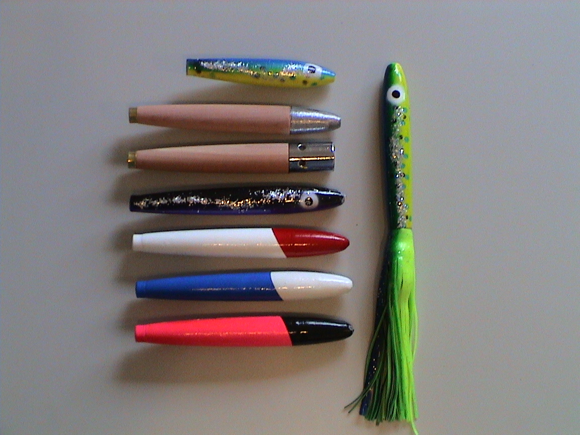 Τώρα για δολώματα επιφανείας μπορούμε να επιλέξουμε ανάμεσα σε poppers, jig (bullet) heads, kona heads, plugs , jet heads και αρκετά άλλα που υπάρχουν στην αγορά. Προσωπικά τις μεγαλύτερες επιτυχίες τις είχα σε ανοιχτόχρωμα poppers μικρού μεγέθους 10-12 εκατοστών . Ένα popper πίσω από τα τεχνητά μου ψαράκια μου χάριζε αρκετές φορές χτυπήματα και τις περισσότερες φορές όταν έβρισκα το κοπάδι περισσότερα από ένα . Μάλιστα το popper είναι πιο αποδοτικό μέρες με ήσυχες θάλασσες όπου ο παφλασμός του τεχνητού στο νερό δραστηριοποιεί περισσότερο τα ψάρια.