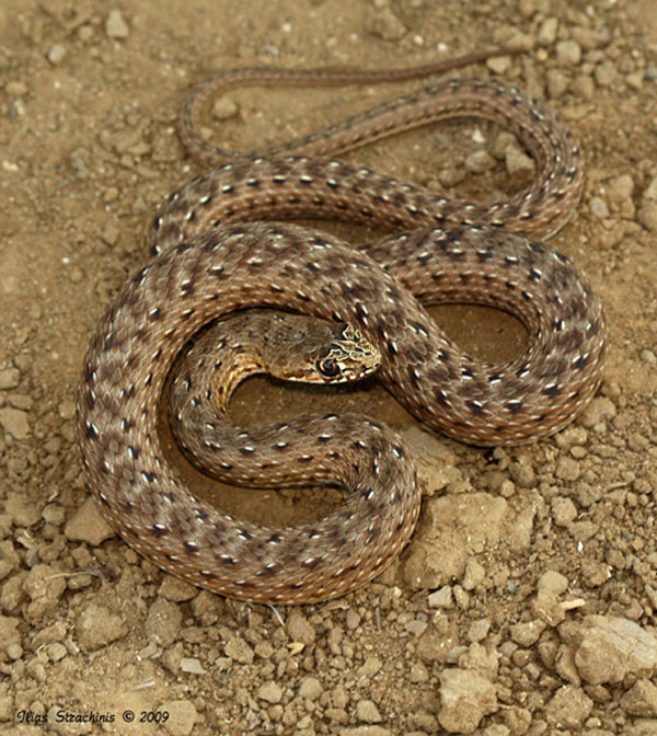 β) Πρόκειτα για κάποιο από τα Κυπριακά είδη και λόγω αδρεναλίνης και φόβου δεν συγκράτησες σωστά τα χρώματα. Το μοναδικό είδος που έχουμε με κάτι σαν διαμάντια στην ράχη είναι το Hemorrois ( = Coluber) nummifer που έχει σκούρα "διαμάντια" σε ξανθό background. Το νεαρό δείγμα που κρατώ στο χέρι μου στην δεύτερη φωτό το έπιασα στις Αγγλισίδες στις 13/7. Το είδος αυτό είναι τελείως ακίνδυνο και σπάνια φτάνει το 1.5 μέτρο.