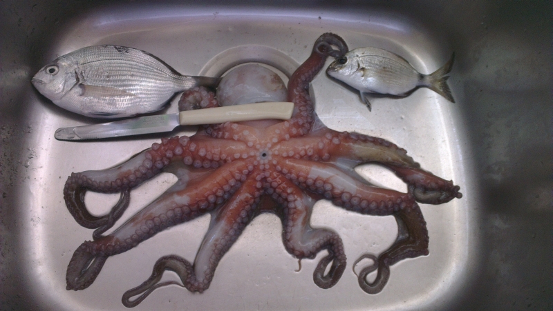 Μάλιστα το ένα κεφαλόπουλο παρολίγον να μας το φάει η σμύρνα.