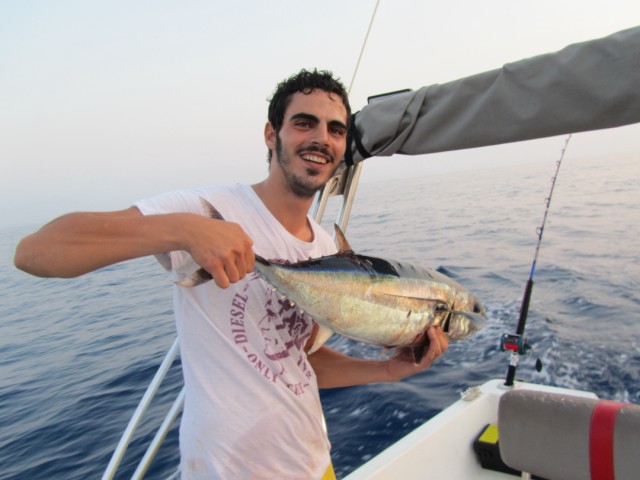 Χθές φίλοες που έκανε συρτή για παλαμόδες σε βάθος 70 μέτρων στην Λεμεσό έπιασε εκτός απο παλαμίδες και ένα τοννάκι 2 κιλά περίπου !!!!!!!!!