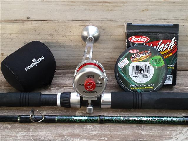 Πωλειται καλαμι σε αριστη κατασταση σεταρισμενο για Μολυβι Φυλακα μαρκας Shimano SpeedΜaster 20-30 lb μαζι με ολοκαινουργια μηχανη Poseidon 300R Single Speed γεμισμενη με 300 μετρα νημα Whiplash 0.24mm. Τιμη € 370