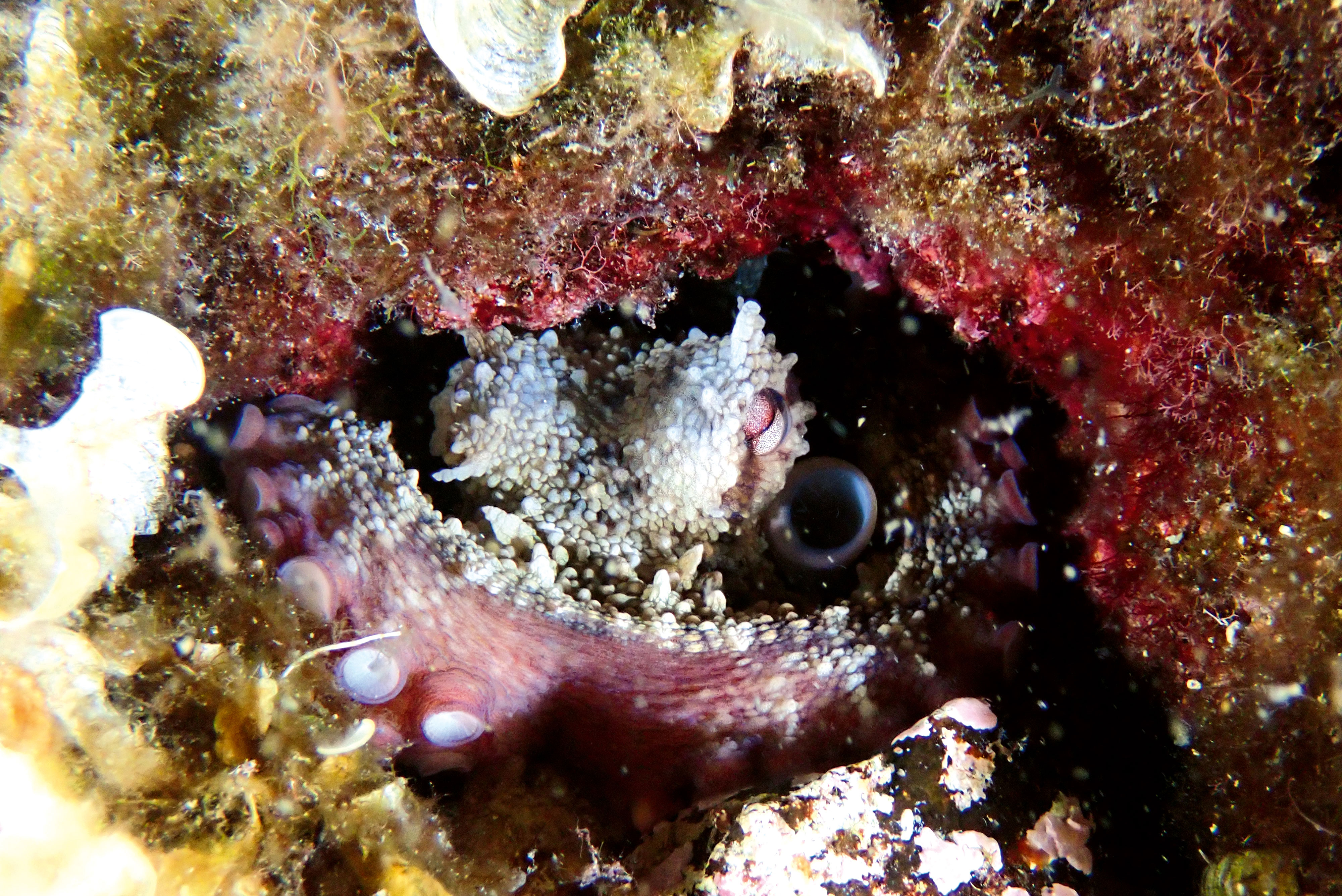 Το χταπόδι (επιστημονική ονομασία: Octopus vulgaris) είναι ένας ευκαιριακός, βενθικός θηρευτής που ανήκει στην τάξη των κεφαλόποδων και συναντάται σε ποικίλους οικοτόπους όπως κοραλλιογενείς υφάλους, κοραλλιογενή χαλίκια, θαλάσσια βλάστηση, βραχώδεις υφάλους και, περιστασιακά, σε αμμώδεις και λασπώδεις πυθμένες. Το κεφαλόποδο αυτό συνήθως συνδέεται με κάποιο είδος δομής για την κατοικία του, όπως βράχοι, χαλίκια, κοχύλια, σφουγγάρια, κοράλλια, θαλάσσια βλάστηση ή τεχνητές κατασκευές.