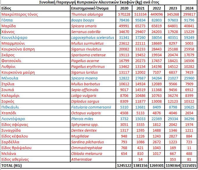 Τα στοιχεία για την περίοδο 2020–2024 δείχνουν ότι η αλιεία στην Κύπρο αλλάζει και δυστυχώς όχι προς όφελος των ψαράδων.
