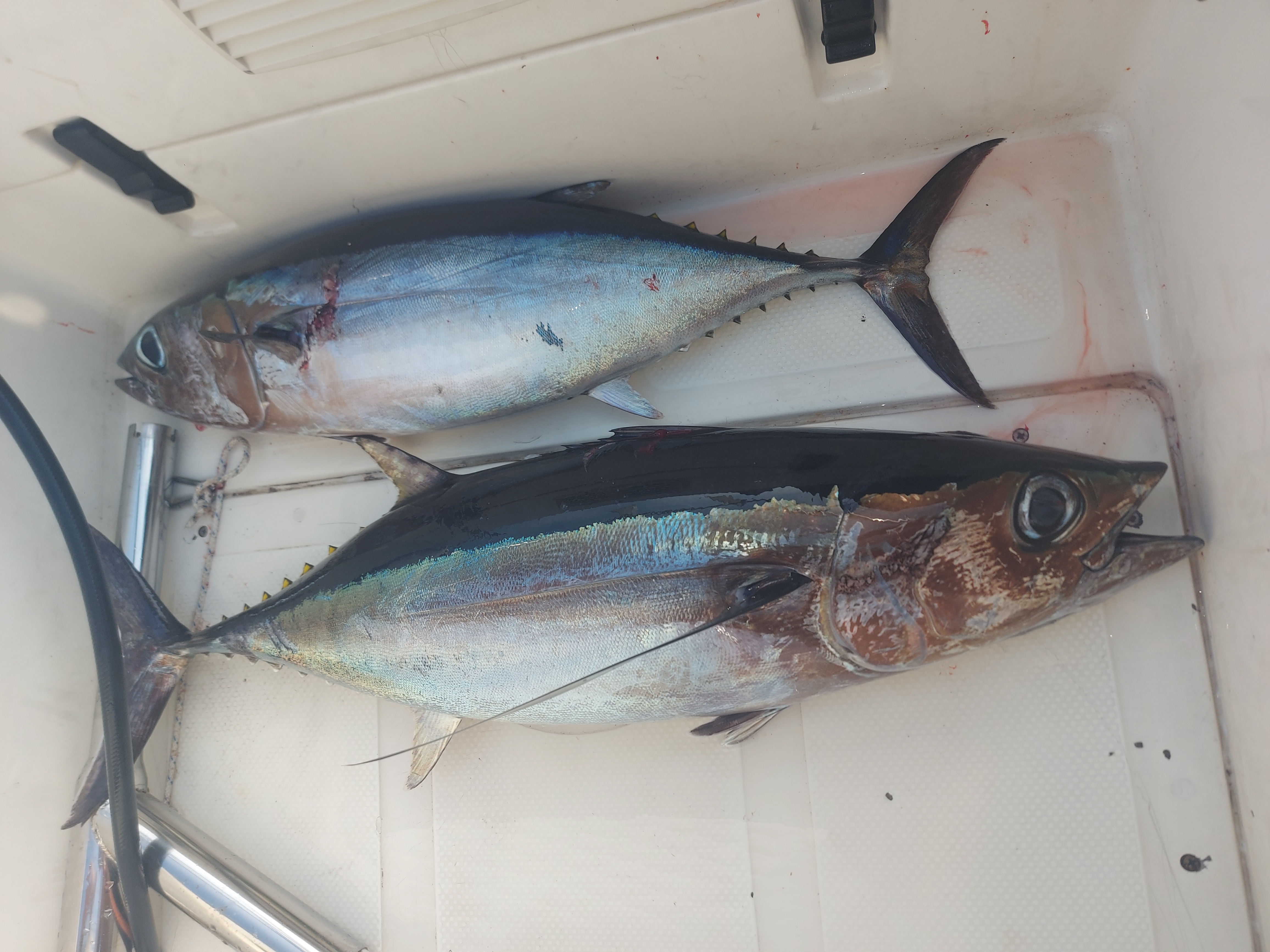 Οι τόνοι κυνηγάνε κυρίως κοντά στην επιφάνεια και αυτή την εποχή υπάρχει αφθονία από μικρά καλαμαράκια. Ίσως για αυτό και τα συγκεκριμένα τεχνητά να αποδίδουν καλύτερα.