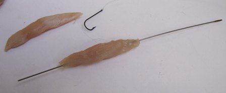 κοψε ενα μακροστενο κομματι περασε το πανω σε βελονα και τυλιξε το με ελαστικο νημα. μετα περνας το στο αγκιστρι οπως τα σκουλικια